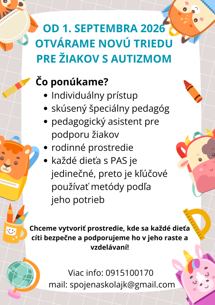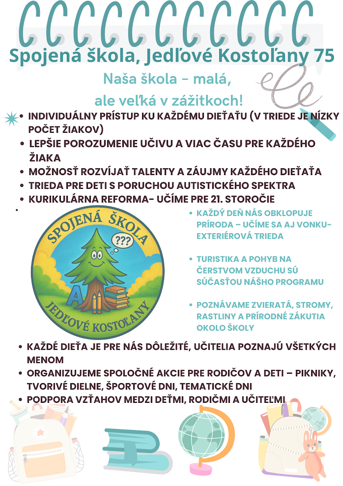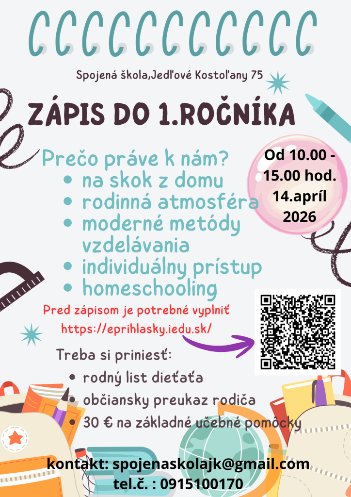 Spojená škola v Jedľových Kostoľanoch srdečne pozýva rodičov, aby sa zúčastnili zápisu do 1. ročníka, ktorý sa bude konať 14. apríla 2026. Zápis prebehne od 10:00 do 15:00 hod. Naša škola sa vyznačuje rodinnou atmosférou a modernými metódami vzdelávania, čo vytvára ideálne prostredie pre rozvoj detí.